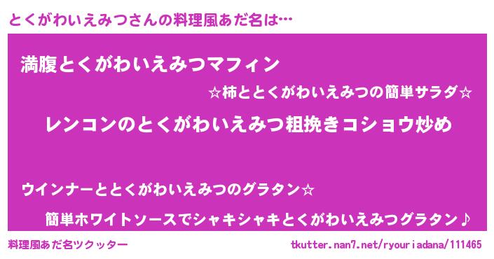 | 可愛いあだ名 | 『とくうちぇる』『とくがわいえみつママ』 |