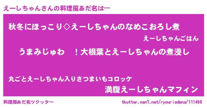 | 意味不明あだ名 | 『えーしちゃんフォーエバー』 |