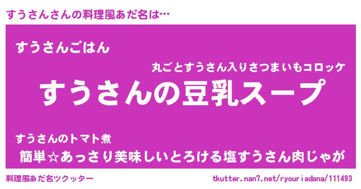 | 胡散臭い通販商品みたいなあだ名 | 『信頼と実績のサプリメント…その名も「すうさん」』 |