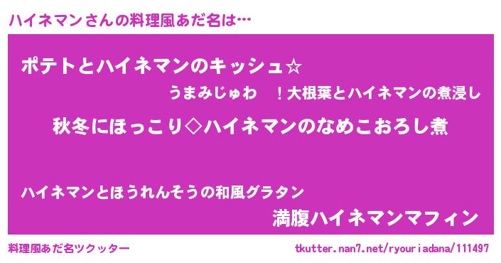 | 胡散臭い通販商品みたいなあだ名 | 『全米が絶賛したサプリメント…その名も「ハイネマン」』 |