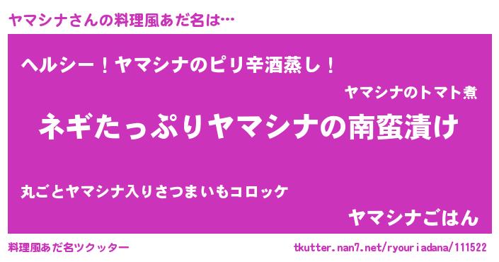 | 意味不明あだ名 | 『ペロリンヤマシナ』『自称ヤマシナ』 |