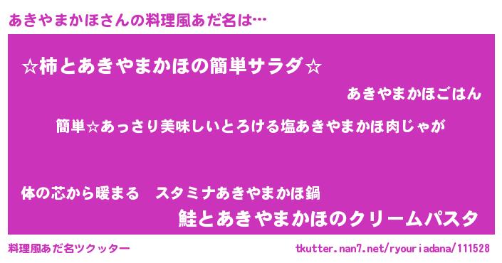 | ヘコむあだ名 | 『あきやまかほ(遠い目)』『なまこ酢』 |