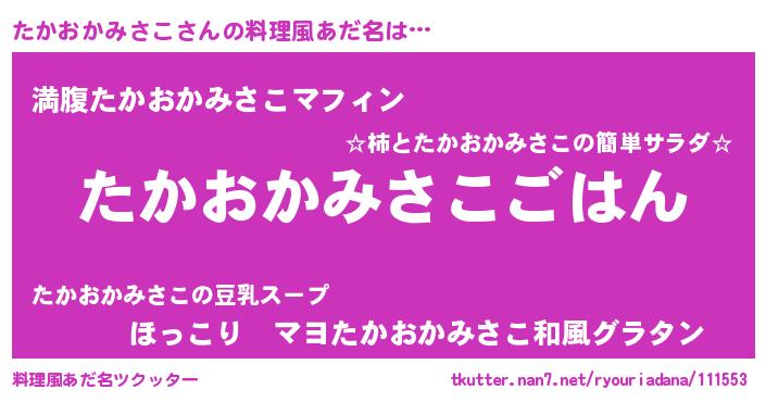 | ヘコむあだ名 | 『たかおかみさこ(笑)』『たかっ子』 |