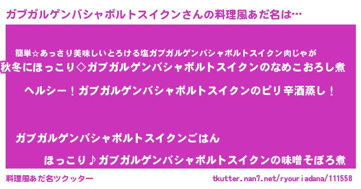 | ヘコむあだ名 | 『ガブガルゲンバシャボルトスイクン(遠い目)』 |