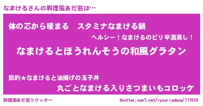 | ポケモン風あだ名 | 『ナマキング』『ナマケダネ』 |