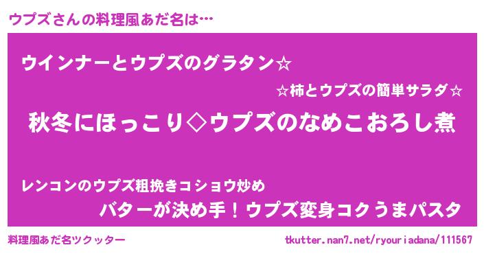 | ポケモン風あだ名 | 『ウプゴンZ』『ウプズダネ』 |