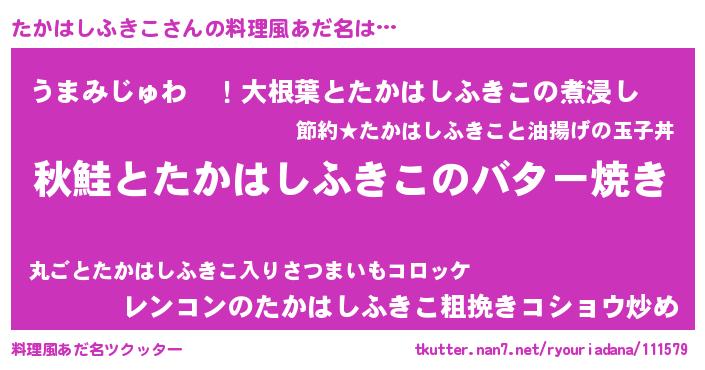 | 意味不明あだ名 | 『永久保存たかはしふきこ』 |