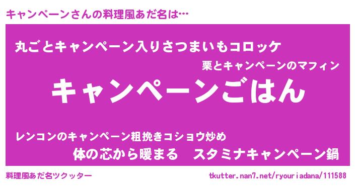| 意味不明あだ名 | 『たけのこ科キャンペーン属』 |