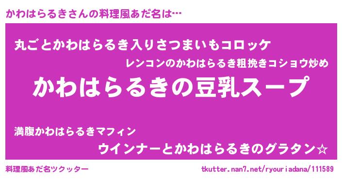 | 胡散臭い通販商品みたいなあだ名 | 『信頼と実績のペンダント…その名も「かわはらるき」』 |