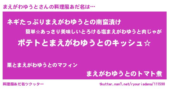 | 意味不明あだ名 | 『とにかく怪しいまえがわゆうと』 |