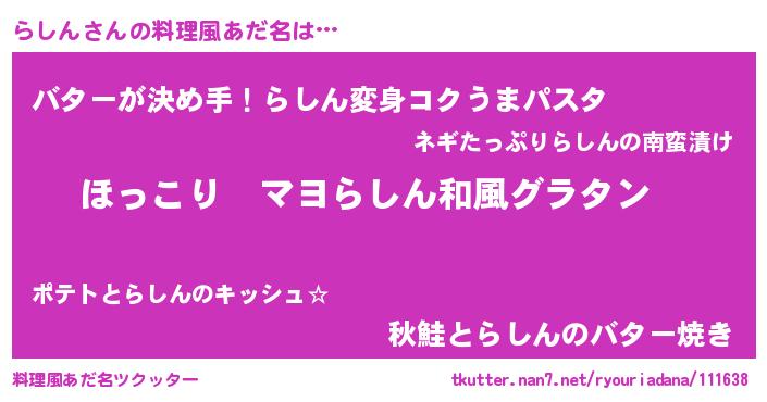 | ヘコむあだ名 | 『らしん(遠い目)』『らしにー』 |