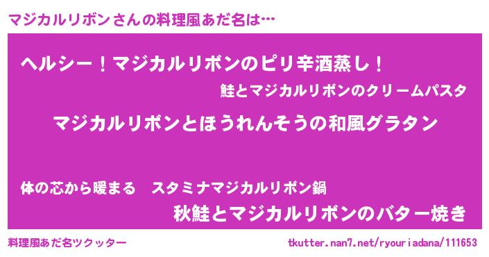 | 胡散臭い通販商品みたいなあだ名 | 『テレビで話題のアガリクス…その名も「マジカルリボン」』 |