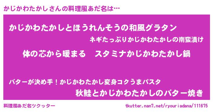 | 欧米人風あだ名 | 『かじかわたかしクリステル』 |