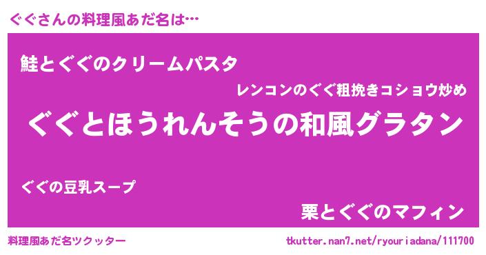 | 意味不明あだ名 | 『ヨモギ科ぐぐ属』『自称ぐぐ』 |