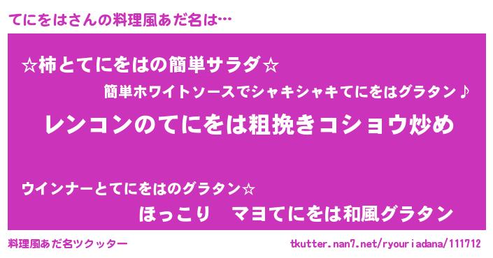 | 意味不明あだ名 | 『自称てにをは』『てにをはフォーエバー』 |