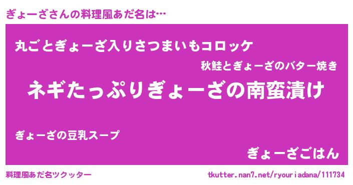 | 意味不明あだ名 | 『ペロリンぎょーざ』『永久保存ぎょーざ』 |