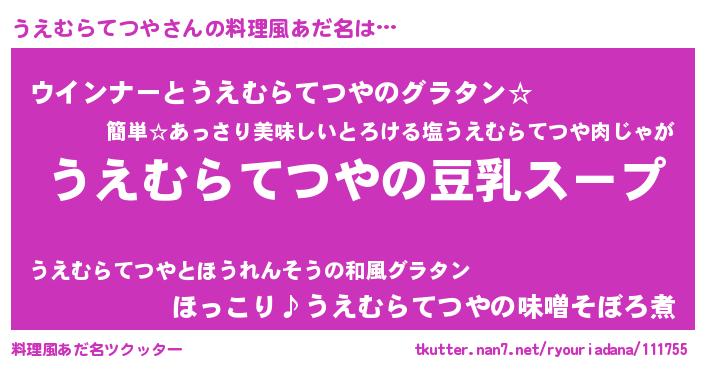 | 男性向けラノベタイトル風あだ名 | 『ダンジョンにうえむらてつやを求めるのは間違っているだろうか』 |