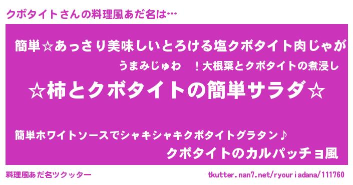 | 意味不明あだ名 | 『永久保存クボタイト』 |