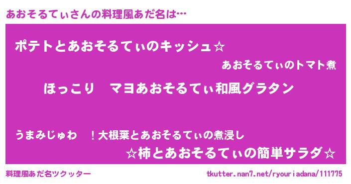 | 欧米人風あだ名 | 『ダレノガレあおそるてぃ』 |