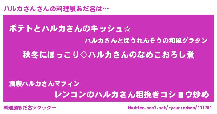 | 意味不明あだ名 | 『とにかく怪しいハルカさん』 |