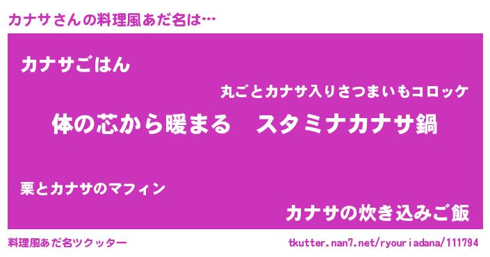 | 意味不明あだ名 | 『カナサフォーエバー』『ペロリンカナサ』 |