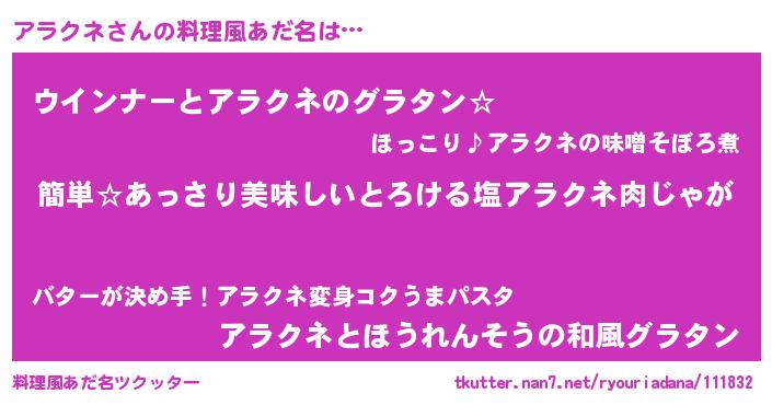 | ヘコむあだ名 | 『アラクネ(爆)』『なまこ酢』 |