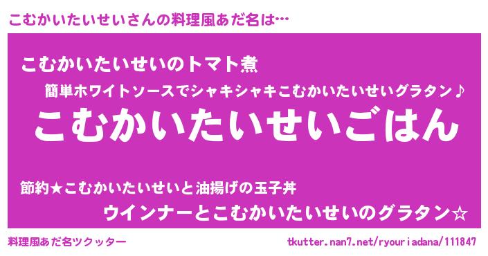 | 胡散臭い通販商品みたいなあだ名 | 『100人中100人が認めたマグネット磁石…その名も「こむかいたいせい」』 |