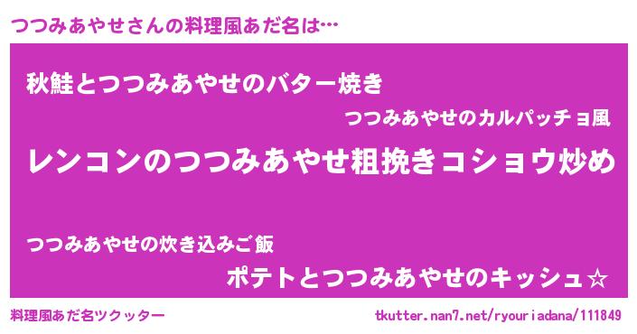 | 欧米人風あだ名 | 『ケンブリッジつつみあやせ』 |