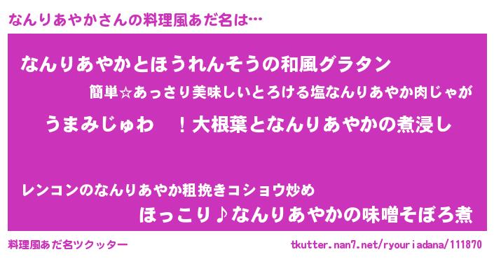 | 意味不明あだ名 | 『なんりあやかフォーエバー』 |