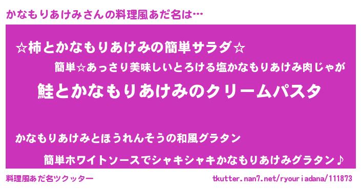 | ヘコむあだ名 | 『かなっ子』『かなもりあけみ(笑)』 |