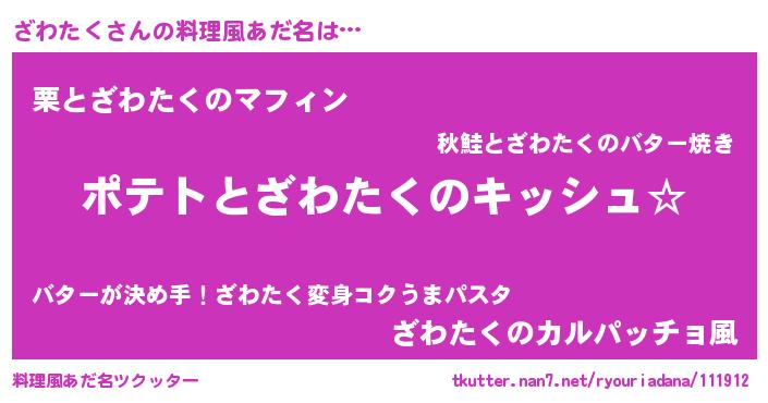| 胡散臭い通販商品みたいなあだ名 | 『伝統あるサプリメント…その名も「ざわたく」』 |