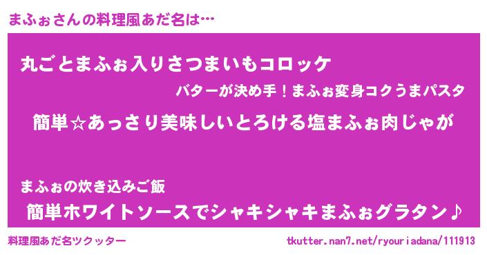 | ヘコむあだ名 | 『まふぉ(爆)』『まふっちょ』 |