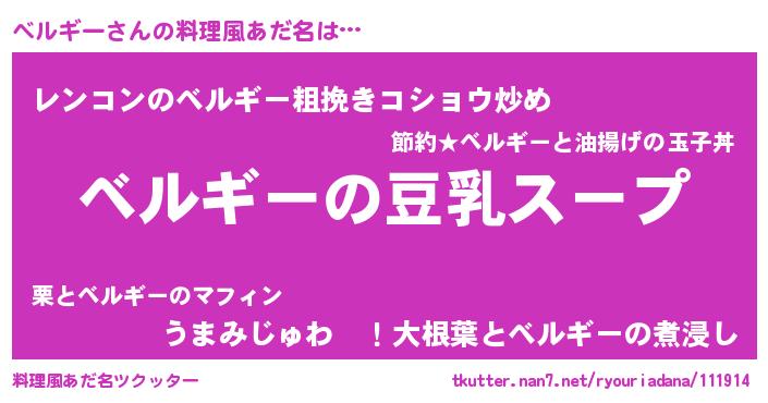 | ヒーロー風カッコイイあだ名 | 『暗黒騎士ベル』『超時空戦士ベルギー』 |