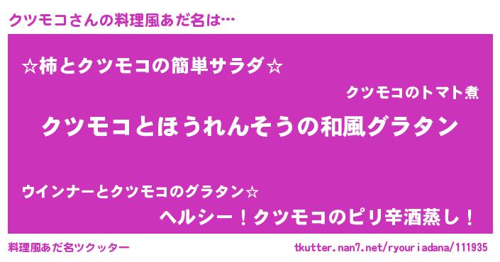| ヒーロー風カッコイイあだ名 | 『最強戦士クツモコ』『仮面クツダー』 |
