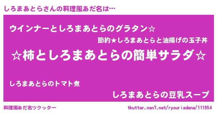 | 意味不明あだ名 | 『しろまあとらフォーエバー』 |