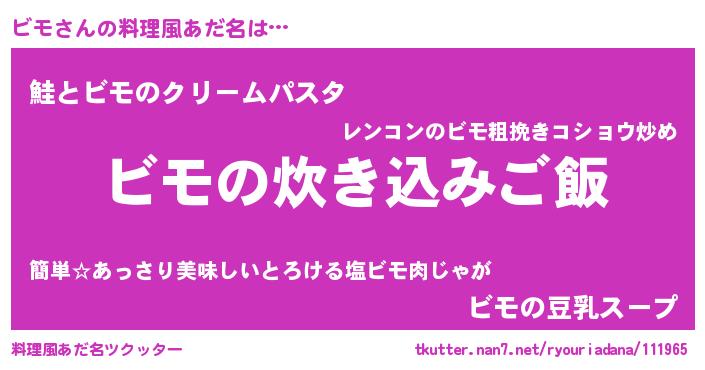 | ヘコむあだ名 | 『ビモぷりん』『ビモ(笑)』『牛乳』 |