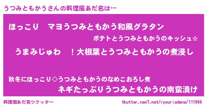 | 胡散臭い通販商品みたいなあだ名 | 『運命の人と巡り会える高級そうな壺…その名も「うつみともかう」』 |