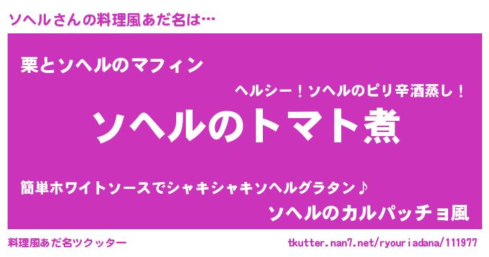 | 女子向けラノベタイトル風あだ名 | 『ソヘル夫妻のなれそめ』『闇のソヘル』 |