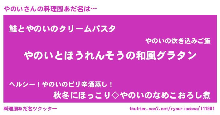 | 男性向けラノベタイトル風あだ名 | 『やのい~年齢イコール彼女いない歴の魔法使い~』 |