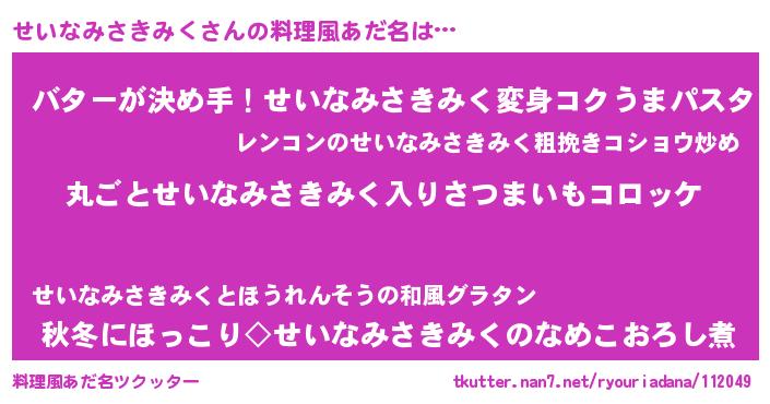 | 男性向けラノベタイトル風あだ名 | 『この素晴らしい世界にせいなみさきみくを!』 |