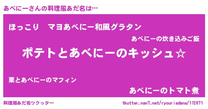 | 男性向けラノベタイトル風あだ名 | 『ダンジョンにあべにーを求めるのは間違っているだろうか』 |