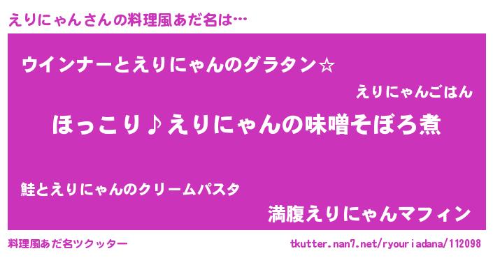 | 男性向けラノベタイトル風あだ名 | 『えりにゃんの憂鬱』 |