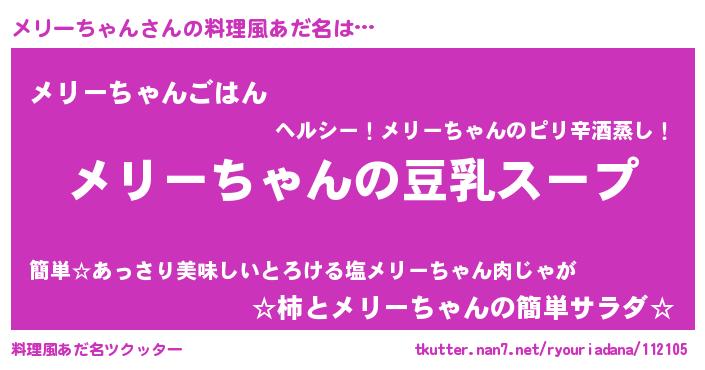 | 意味不明あだ名 | 『とにかく怪しいメリーちゃん』 |