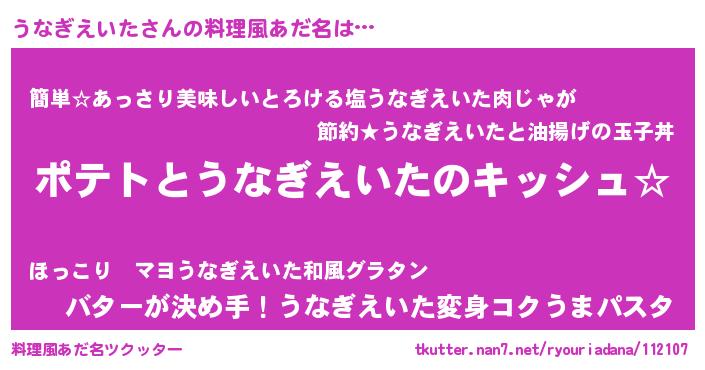 | 女子向けラノベタイトル風あだ名 | 『うなぎえいたの卵を拾いまして』 |
