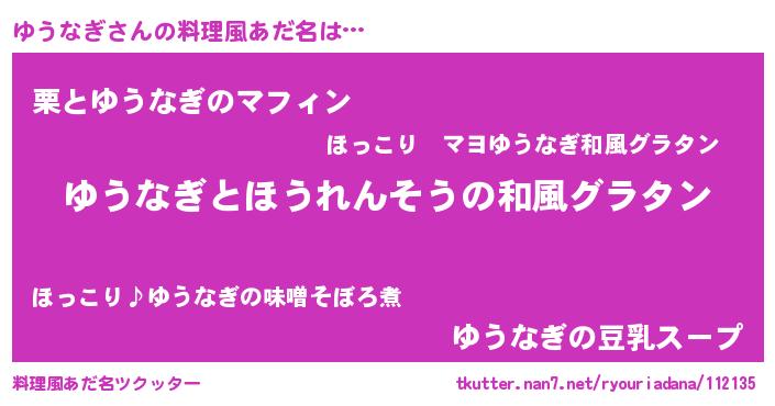 | 意味不明あだ名 | 『ニラ科ゆうなぎ属』『ペロリンゆうなぎ』 |