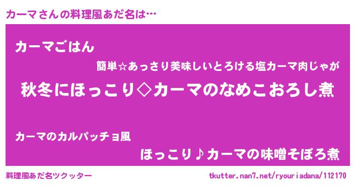 | 男性向けラノベタイトル風あだ名 | 『カーマに滅ぼされるだけの簡単なお仕事です』 |