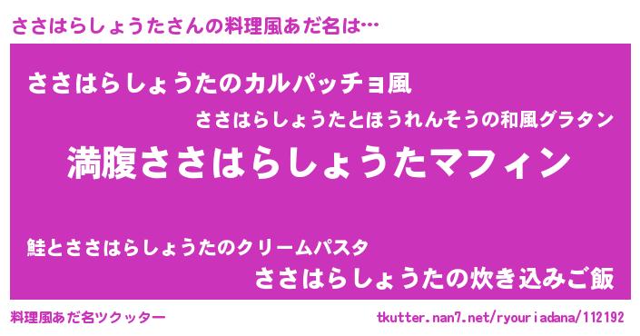 | ヘコむあだ名 | 『ささはらしょうた(笑)』『ささもー』 |