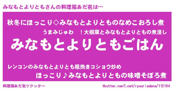 | 欧米人風あだ名 | 『トリンドルみなもとよりとも』 |