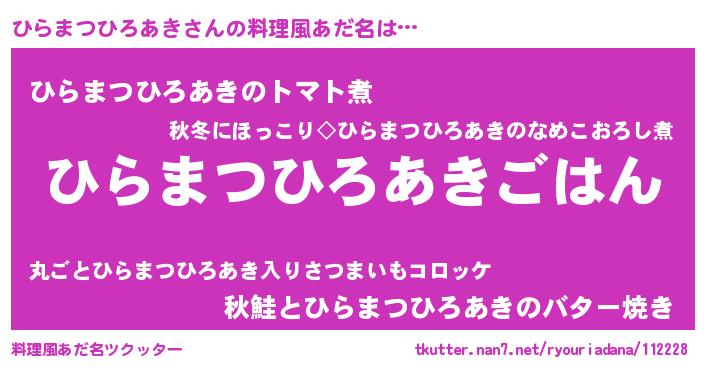| 男性向けラノベタイトル風あだ名 | 『ヒラマツヒロアキスレイヤー』 |