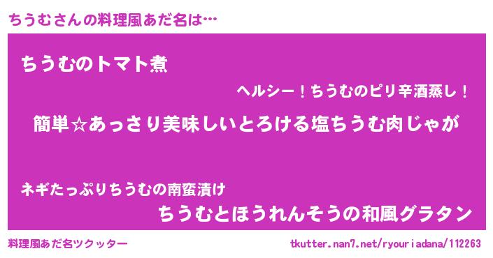| 意味不明あだ名 | 『永久保存ちうむ』『なめこ科ちうむ属』 |